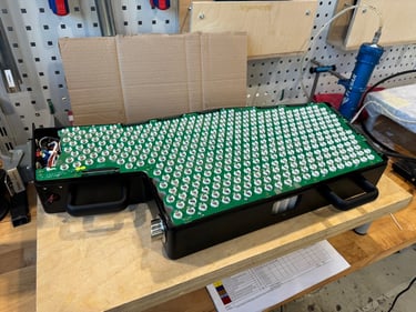 Here you can also see the safety aspects of all the battery system, we have single cell fuses, we have the special KHAIEL material, and the battery is completely connected over this big PCB. So we have a very compact and light weight and safe design.